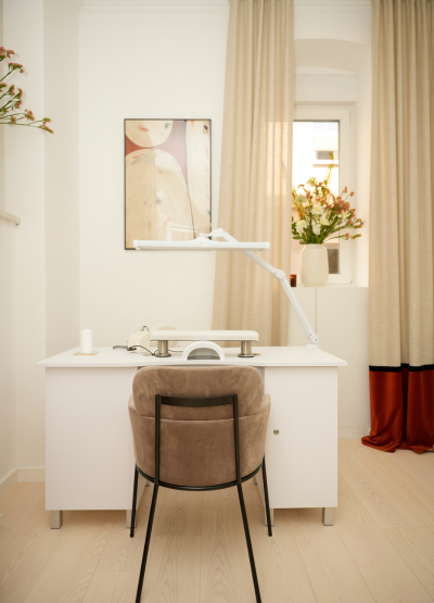 Novi salon na Ilici 128 odiše modernim i ugodnim interijerom koji podsjeća na udobnost vlastitog dnevnog boravka. "Htjela sam da je novi salon personaliziran, jako ugodan, poput dnevnog boravka, estetski moderniji i ugodniji te da ide u smjeru boutique Studija Evelin. Mislim da smo itekako uspjeli."